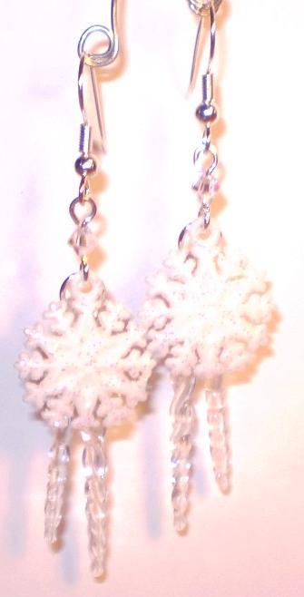 | #2067 Snowflakes and Icicles with Swarovski Crystals $7.00 Glittery acrylic snowflakes and acrylic icicles dangle from sparkly AB Swarovski crystals.
